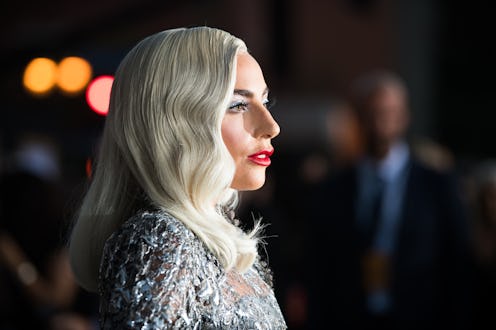 And just because the "Shallow" singer opted for bright monochromatic blue doesn't mean she couldn't wear bold makeup, too — it is Gaga, after all. She went for a neutral lip, but her metallic smoky eye was the highlight. The nominee, of course, topped her look off with plenty of bling.