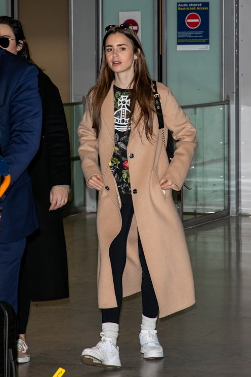 In case you're not familiar with the recently buzzy series, Emily in Paris, here's a spoiler-free synopsis. Emily Cooper (played by Lily Collins) moves to the City of Lights for a job and quickly falls for all the trappings of Parisian life: romance, nightlife, and, of course, the clothes. Months after the series has premiered on Netflix, it now appears that Cooper's affinity for French designers has bled into Collins' wardrobe in real life. Collins' camel-colored jacket from French fashion brand Recc Paris, has made more than one street style appearance this week alone. (Recc Paris was founded by French influencer and model, Caroline Receveur.)