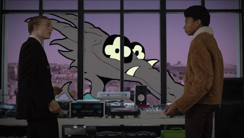 To participate in the digital rendition of Men's Fashion Week, Louis Vuitton released a video, entitled "The adventures of Zoooom with friends" on Jul. 10, which called upon a trove of kitschy, unconventional cartoons. The film illustrates their misadventures as they prepare for their journey at sea. Starting at the Maison's ancestral home in Asnières, a shaggy dog, a violet dinosaur, and countless other obscure characters make their way to the barge — all bedecked in the caricatured version of LV's upcoming collection. Black-and-white checkered pantsuits, faded jeans, cool, vintage-inspired tees, and flared trousers were all illustrated, taking abstracted forms as the narrative shifted. By nightfall, the troupe found themselves in a pseudo-psychedelic trip, their ensembles then rendered in supersaturated, '90s-era color profiles. In each look, its original format and its technicolor revision are easy to imagine blending with women's closets. Experimentation with color was a key characteristic of womenswear before it was welcomed into mens, a construct that Abloh's Louis Vuitton loves breaking the mold on. As the key vessel, the shipping container is, then, the confluence of Abloh's fixation on the "industrial" and LV's famous trunk, which was born out of the Asnières atelier in 1858.