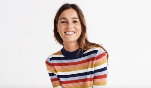 For a more vibrant look, select the Mockneck Pullover Sweater in Stripe, $55.65 with code ORDERUP. The slim-fit sweater, originally $88, gives off a fun '70s vibe — wear with cropped bootcut jeans and hiking-inspired boots on a brisk Sunday afternoon.