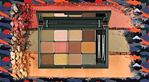 Sometimes, the sign that a trend is really sticking around will be a notable crossover from one category to another. Recently, neon clothes made room for electric-colored nails, while hot pink eyeshadow heralded the style set's shift from muted blush pink pieces to a much bolder hue. The latest trend to prove its staying power? Utility-chic camouflage, which has started showing up on everything from printed denim to daring accessories — and now all over the Maison Kitsuné x Shu Uemura collab. If your makeup bag could use a fresh new look, snag this collection fast (because it won't last for long).