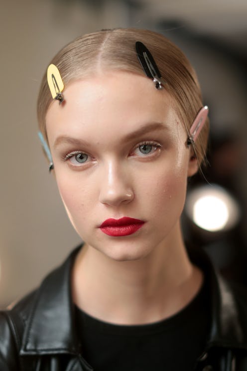 For McGrath, her interpretation of Jacobs' theme rested on two essentials that everyone likely has in their arsenal: black pencil and red lipstick. "When you think about red lipstick and liner, you think of all time periods — past, present, and future," she says. "It's a real modern take on beauty, and the fact that we take everything past, present, and future — and that's kind of what makes beauty today."