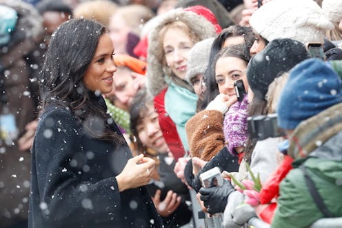 On Feb. 1, the Duke and Duchess of Sussex took a trip to the south of England, braving the snow for a visit to the Bristol Old Vic, the oldest continuously working theatre. For the outing, Harry stuck with his go-to outfit combo: casual trousers paired with a cozy sweater and a gray, wool topcoat. Markle, on the other hand, opted for an ensemble that was ever-so-slightly outside of her wheelhouse, namely because of her footwear of choice.