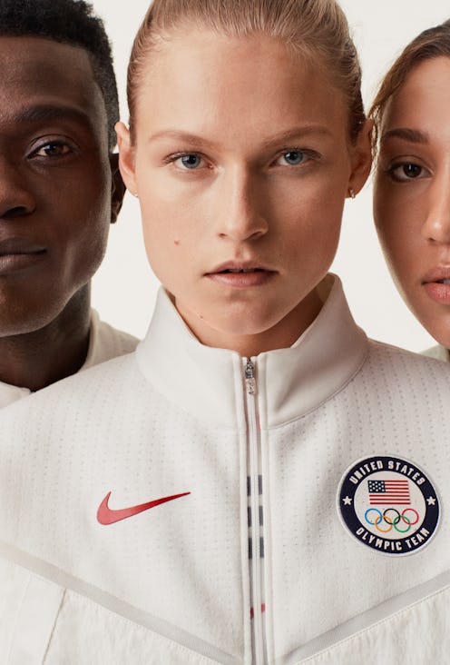 The medal stand tracksuits tone down the stars and stripes for a mostly white look that resembles what an American astronaut might wear on an international space mission. The letters USA on the underside of the jacket’s right forearm, appear when the medalist places their hand over their heart for the national anthem — a favorite detail among those competing. "The Olympics is not a time to be shy," explains John Hoke III, Nike's Chief Design Officer, as we sit in a stark all-white room, looking for the first time at what will be Team USA's kit come summer. "It's a moment of dreaming big, working with athletes' wildest audacious imagination and abilities, taking daring steps forward. And most importantly, taking actions, converting words and concepts into real life products that push performance forward."