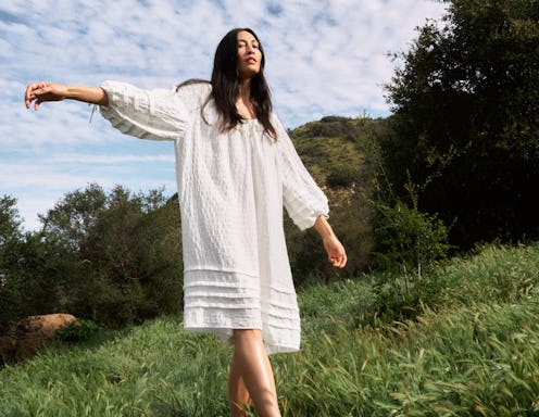 “This collection is an homage to natural beauty,” Caity Knox, a concept designer at & Other Stories, shared in a campaign video for the sustainable capsule. “Our starting point was wanting to create timeless garments that can live in your closet forever and stand the test of time.” Pieces in the new launch touch on major trends like romantic puff sleeves and feminine ruffles to round out breezy, comfortable silhouettes with a minimal color palette and prints like ditsy florals and checks. In addition to the classic cuts of these styles, they also feature adjustable details like drawstrings, ties, and belts.