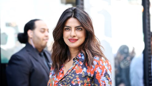 Chopra attended the God's Love We Deliver Golden Heart Awards in New York City on Oct. 16 in what's about to be your new favorite fabric. The actress opted for a unique red-carpet look by wearing a suede button-down trench dress in a pale-blue shade from Michael Kors' Spring '19 collection. Chopra added metallic accessories, including a miniature gold pouch and criss-cross gladiator pumps.