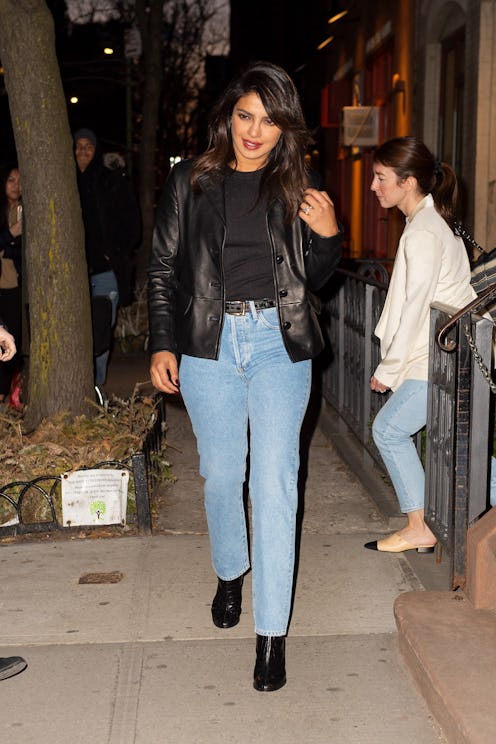 Layering is key when it comes to transitional-season styling — which Chopra knows well. The actor opted for a sleek leather jacket from Aritzia, the Canadian-based brand that even Meghan Markle loves. As opposed to a traditional, biker-style leather jacket, Priyanka's button-down version is a bit sleeker, thanks to its relaxed collar, lightweight fabric, and inconspicuous hardware.