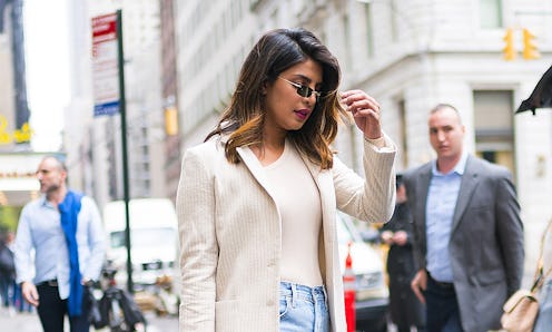 If I draw a blank while getting dressed in the morning, I look towards Priyanka Chopra’s white blazer outfits for a little inspiration. Although the actor’s street style differs from day-to-day (wide-leg pants for a date with Nick Jonas or midi dresses for a day in New York City), you can usually count on Chopra to tie together a look with a simple, tailored jacket. The best part about her go-to piece? It pulls together any outfit — even if you're in a pinch.