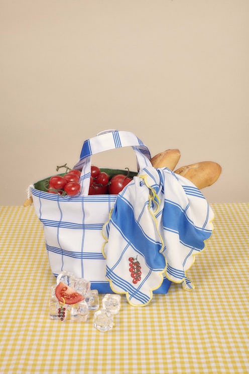 Even better? Everything rings in for under $100 with the exception of a bundled trio of items priced at $128. The bundle includes the Picnic Tote and the single hoop Tomato Earring (you can grab it solo for $45) as well as the scalloped trimmed Sir Scarf-a-Lot, which is priced at $35 on its own.