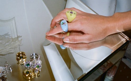 For her latest jewelry collection, Liang taps further into the nostalgia that courses through her brand. The first drop in the series — which is inspired by the costume jewelry she wore in her youth and the experience of growing up — features 15 pieces guaranteed to catch anyone’s eye. From colorful, oversized rings and pearl earrings to rhinestone necklaces, these pieces feel like a sophisticated take on the pieces you may have worn while playing dress-up in your early years.