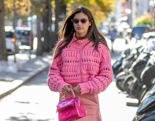Gone are the days when fall was synonymous with all-black clothing, as Sara Sampaio's pink-on-pink outfit has proven. The model channeled Legally Blonde's Elle Woods in a full-on bubblegum-pink ensemble as she walked around Paris Fashion Week on Tues. afternoon. She even paired her chunky sweater and PVC skirt with bold cowboy boots and a hot-pink bag.