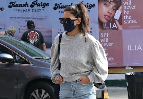 Holmes kept it tasteful, but fun, in a puff-shoulder sleeve crop top and high-waisted jeans while attending the Ulla Johnson fashion show during New York Fashion Week in Feb. 2020.