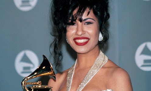 Selena's signature look — brick-red lipstick and slender cat-eye — felt extra glamorous when paired with the intricate white and silver dress she wore to the 1994 Grammys. There, she won the Best Mexican-American Album award for Live!, a first for any female Tejano musician.