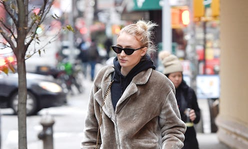 After a busy early Dec. spent celebrating the lavish nuptials of Priyanka Chopra and Nick Jonas, Turner is back in New York City and ready to tackle the frigid temperatures in style. On Dec. 17, the actor was photographed out and about in SoHo wearing what is bound to become your new go-to cold-weather uniform. Her no-fuss wintertime look consisted of a pair of black J Brand skinny jeans, a casual hoodie, and buckled combat boots that added some cool-girl edge.
