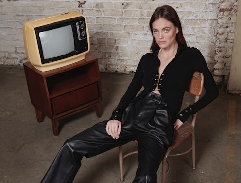 Many styles draw design codes from past and present favorites of the Kardashian-Jenner clan, including tonal, all-leather looks (Kourtney's favorite from this spring, which happens to be a Rachel Green-approved style for fall) and button downs, which Kendall has worn every which way. There's also a standout tuxedo bustier, which can be layered with matching suit pieces from the collection.