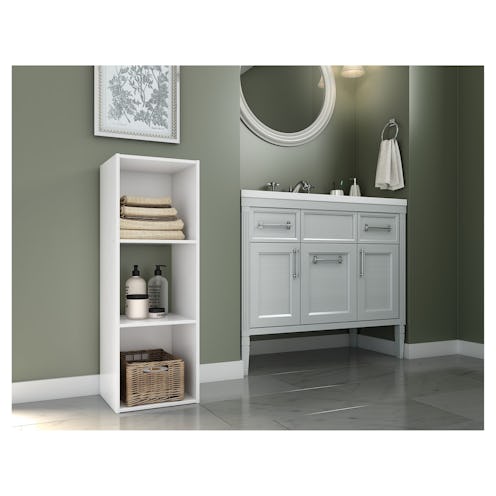 If you’ve been needing a place to house picture frames, vases, and books, or maybe need a space-saving shelf for your bathroom, Target’s vertical three-cubed shelves are a great option and come in a variety of colors so you can complement any color scheme or decor.