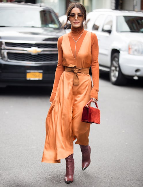 For an unexpected twist on the turtleneck, consider this chunky knit crop turtleneck. Pair it with high-waisted pants and skirts, or add a cozy touch to jeans. It has a cute collar that hits about halfway up the neck, and it's available in several solid colors, including classic black and bright orange with white-trimmed sleeves.