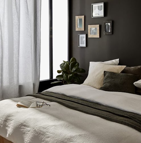 At just $129 for the basic double-sized washed linen duvet cover, this bedding essential in Zara Home's Linen Selection is about to become the secret behind every enviably cozy bedroom pic on Instagram. The minimal duvet is available in white, dark gray, and sunshine yellow, and is listed as quick-to-dry, durable, and breathable. If you prefer to keep a more manicured bed but still want a few wrinkles here and there, this colorblocking cotton and linen set features cotton's crisper lines for $99.
