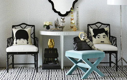Throw pillows are nefariously expensive. You don't stop at just one, either: You want an entire sofa styled with uniquely designed pillow cases, or a stack of soft throw pillows on your bed to fall into. If it's time to perk up your space with fresh pillows — or a new side table, or a chandelier — check out the Jonathan Adler warehouse sale.