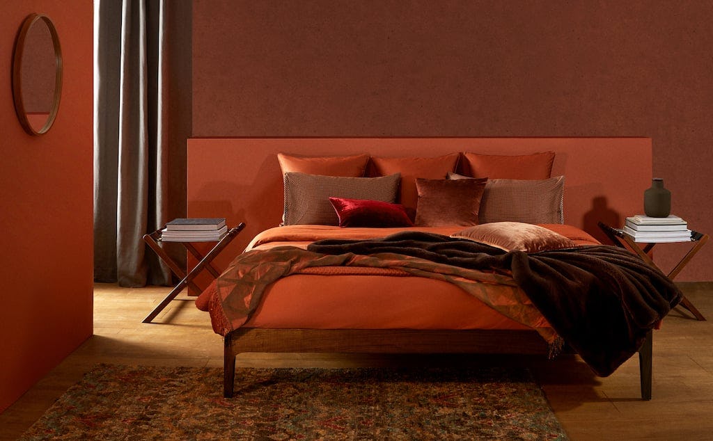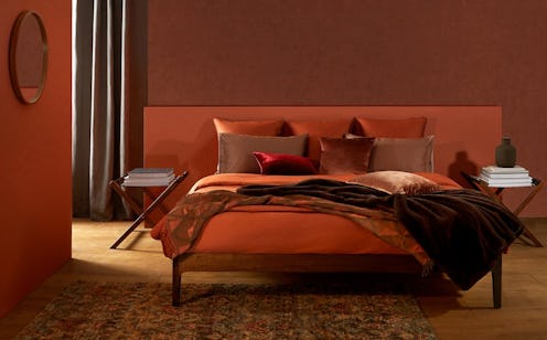 Guests won't be the only ones to enjoy the trend in your home — bring the sultry shade into your bedroom as well via Zara Home's Terracotta Sateen Duvet Cover With Piping. The 500-thread count cover, $139 for a queen size, looks and feels so luxurious you'll think you checked into a hip boutique hotel when you slip into bed. Pile the bed high with elevated accent pillows made from sumptuous velvet and faux fur (a great chance to incorporate trendy animal print), and the result is a warm escape from the cold winter outside.