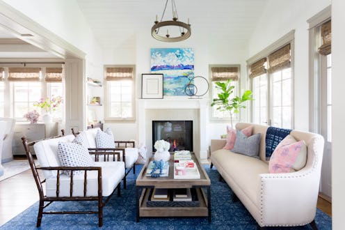 Whether it's the use of spring color trends (like yellow, Living Coral, and even lime green) to jazz up a neutral space, or playing with prints that feel especially fresh for the season, injecting some much needed new energy into your living room might be easier than you think — so long as you know what to look for. And according to Kate Lester of Kate Lester Interiors and Maureen Stevens of Maureen Stevens Design, there are five things in particular than can turn yours into a spring sanctuary. From the affordable to the splurge-worthy, you won't regret investing in these finds.
