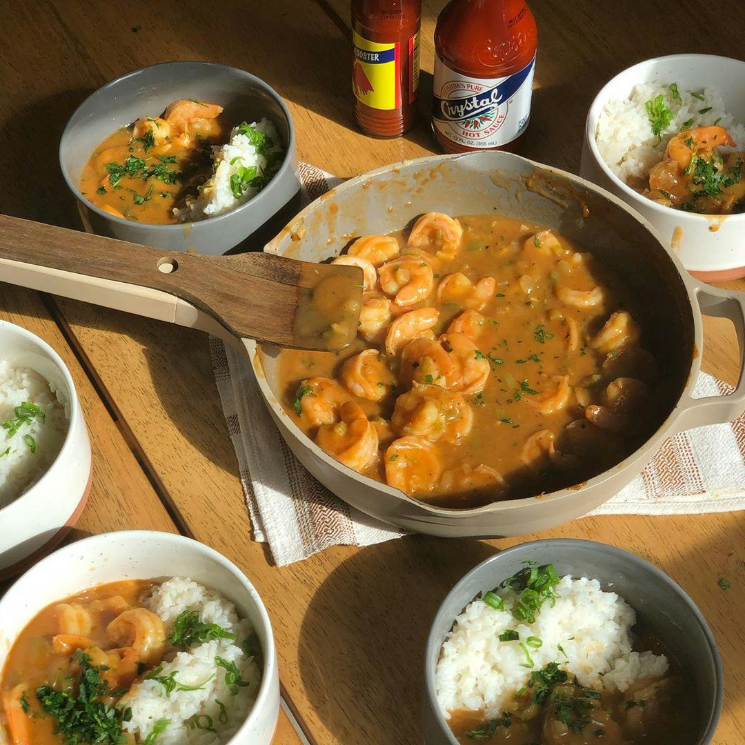 You might be surprised at how renewed your interest in cooking could be with a fresh set of pots and pans. Ceramic cookware in particular is just as sustainable as it is beautiful and easy-to-use, which makes all the difference. "I just got a set of Caraway pots and pans and I'm obsessed: I've already cooked curries, baked bread, and fried eggs in them," says Aemilia Madden, Senior Fashion Editor. "It was one of those situations where I didn't know the sad state I was living in until I went for the upgrade. Life changed."
