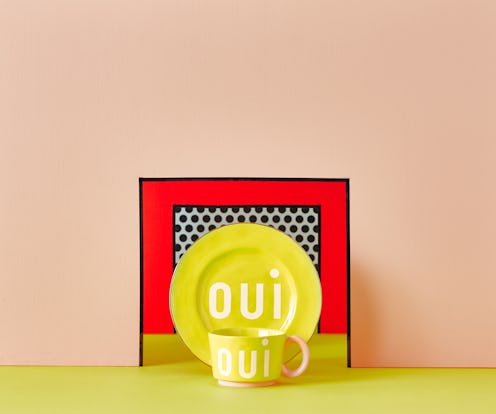 With whimsy Parisian style in more demand than ever, it seems the retail gods are hearing the cries for more. The latest brand to jump on le train? Anthropologie, whose collaboration with Clare V. just dropped today, making all of your gallic dreams come true via its candy-colored tableware, French-worded throw pillows, and graphic-printed wallpaper.