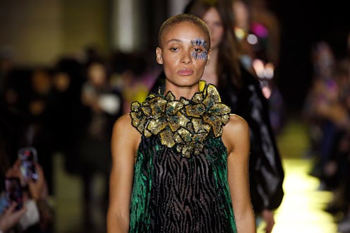 At Simone Rocha's Fall/Winter 2020 on Feb. 17, on the other hand, things were slightly more sparkly. Lead makeup artist Thomas de Kluyver opted for pieces of foil along the eyes — in a move that was very reminiscent of Adeam's Fall/Winter 2020 makeup look at NYFW. If you needed an excuse to bust out your extra-chunky glitter shadow, you just got it.
