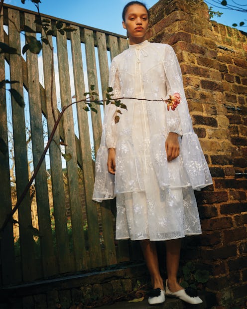 Known for their achingly romantic silhouettes, Kris Brock and Laura Vassar of Brock Collection designed many wedding-appropriate looks made up of two pieces — some from their ready-to-wear collections and others as part of their bespoke bridal business. "While we regularly sketch first, we prefer to work in a more three-dimensional way," Brock explains to TZR of the duo's creative process, often resulting in romantic bodice tops or frilled jackets paired back to feminine skirts. "We're layering, cutting, and draping fabrics on the body, which very often leads to our final silhouettes."