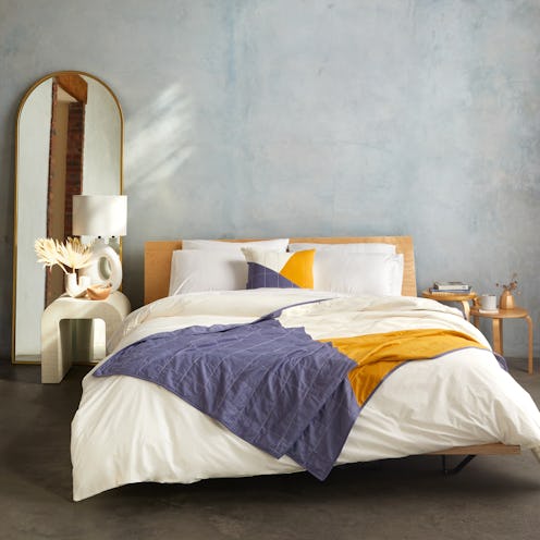 Whereas Brooklinen is known for its minimalist products, this collection is the perfect marriage between traditional and contemporary, as the pieces were created using kantha stitching techniques but in a modern, geometric design and a rich color palette of cream, tan, and blue. The colors and pattern make the bedding perfect for a fall update, but they're also neutral enough to decorate with any time of year.