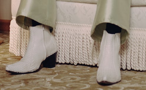 On Saturday, Oct. 24 at noon ET, the drop arrives on both Pyer Moss and Brother Vellies' sites, with distinct men's and women's offerings running the gamut. There's heeled sandals, western booties, and knee-high silhouettes — many of which have 'PYER MOSS' stamped onto each shoe. While uncompromisingly chic, the collab highlights Jean-Raymond and James' shared point of view: that fashion is a catalyst for cultural conversation. As part of Pyer Moss' "American, Also" series, each design aims to illuminate elements of American culture that originated in the Black community. For Collection 3, which these shoes are part of, Jean-Raymond examined Black artists' contributions to rock 'n' roll in particular.