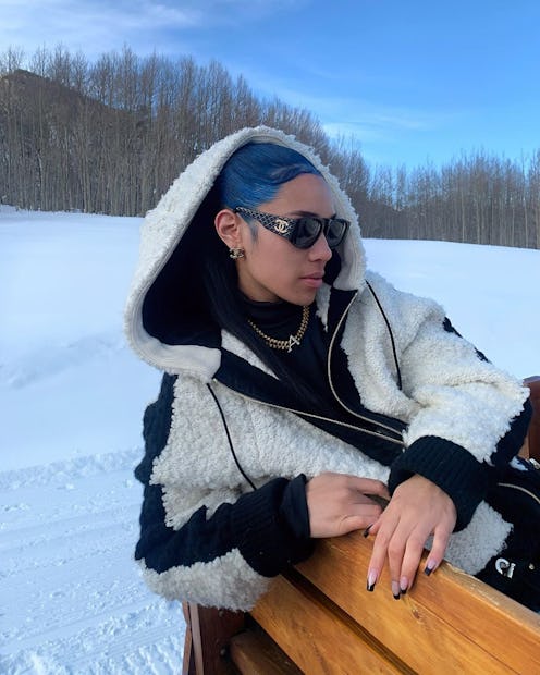 When it's cold outside, your first thought isn't about looking cool; it's usually just about how to keep from freezing. But, influencer Aleali May has the unusual ability to make layered-up ski gear — snow pants, sweater, jacket, hat, and even goggles — into a look. Her secret weapon? "Thermal socks because my toes are like icicles!" she explains to TZR. May just returned from a visit to Aspen with Chanel, where she spent a few days dog sledding, skiing, and even s'more making in Chanel's winter boots, bags, and cold-weather staples — amassing first hand knowledge of how to balance dressing up with actually keeping comfortable and cozy.