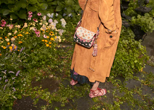 Tapping into the timeless trend of fall florals, Coach and Tabitha Simmons have teamed up to create an edgy-yet-whimsical collection of accessories to wear now through the next few months. Featuring six shoe styles — ranging from feminine Mary Janes to tough moto boots, the Coach x Tabitha Simmons collection will give your transitional outfits the perfect touch as you make your way into fall. The capsule also includes the Crossbody, a reimagined version of Coach’s 1973 Suspender Pouch that ranges from $295 to $595. The footwear label’s founder, Tabitha Simmons, handpicked the silhouette from Coach’s archives and created styles that showcase her knack for cool romance with floral prints, color blocking, and rivets.