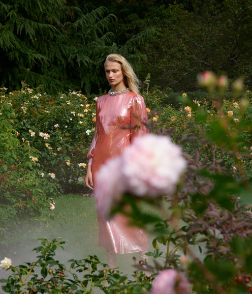 Within the capsule you'll see the relationship of light and dark play out, with glamorous pieces in rich, black-hued fabrics influenced by Maleficent sitting next to whimsical white and lustrous pink styles that channel Aurora. Meanwhile, the brand's popular "Queenie" robe, $900, and "Lila" silk pajama, $525, have been re-imagined in a lilac "Apple Blossom" floral print, which was inspired by the magical forest where Maleficent and Aurora met.