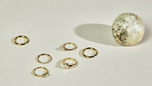 While the pre-Valentine's Day release was timed well, the collection isn't made of just traditional engagement rings. Although two of the rings do feature delicate diamonds and yellow gold — and all of the designs would make gorgeous engagement rings — the other four are made with colorful gemstones and even pearls. (A first for Ceremony, not that you'd be able to tell from the beautiful pearl ring's design.)
