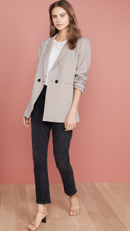 But, if you're really in need of new outerwear, then, now is the time to snag a style (or two) for a lot less. Consider picking up this ANINE BING boxy blazer while it's down to $279.20 from $349. An essential jacket shape for the season, this tailored, houndstooth blazer can be styled endless ways for both work and weekend. Of course, when the fall transitional weather switches to chilly winter temperatures, you'll want a chic coat like this neutral-hued plaid style from Apiece Apart to keep you looking and feeling good.