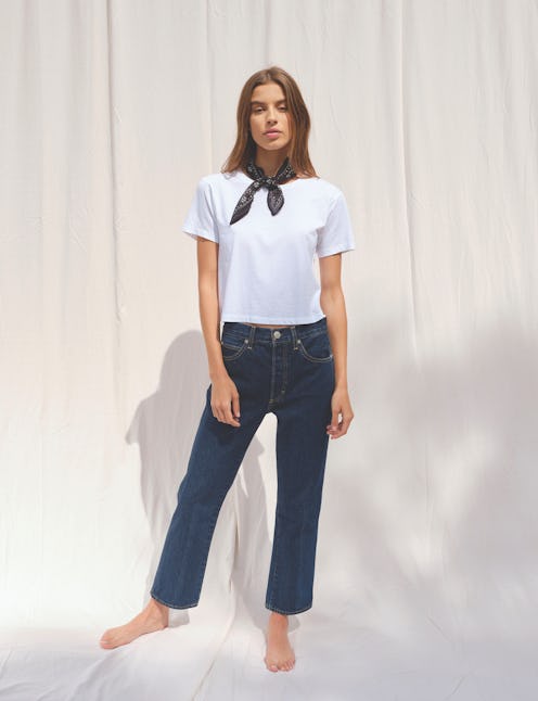 For those after a go-to crew-neck, another great buy for the season is this RE/DONE x Hanes Heritage Cotton Classic Tee for $78. This tee is similar to one of the brand's most popular boxy tee fits, but in this version you'll get a little more length. Or, you can opt for a low scoop neckline with The Row's Stilton style — a luxe jersey tee with a relaxed fit that rings in for $280.