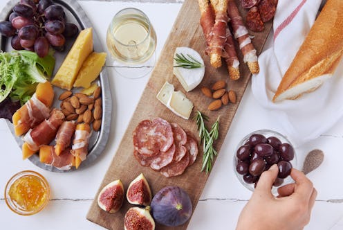 There are a few things that are absolutely crucial for a successful summer soirée. Not the least of these include strong yet tasty cocktails, a good mix of people to keep the conversation interesting, and, of course, some delicious bites. In terms of the latter, your skills in the kitchen may have been what's been holding you back from throwing a bash of your own. But thankfully one of the most coveted snacks for satisfying a group is also one of the simplest — especially if you're following the advice of some of the top chefs, caterers, and food stylists. With a few pro charcuterie plate ideas, you can create a visually appealing and completely delectable spread for your guests to graze — without having to cook a thing (if you don't want to).