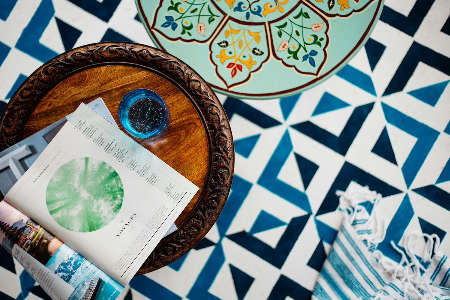 In terms of design, there are a slew of different ways to utilize paint for a chic result. "One really fun and relatively easy option is to introduce a pattern," suggests Jamie Davis, co-founder and owner of Portola Paints. "This can be a great way to add some drama to a room without breaking the bank." To give this a try, you can play with stencils to create a tile effect, or use a trompe l'oeil technique to give the illusion of another surface (like a rug, for example).
