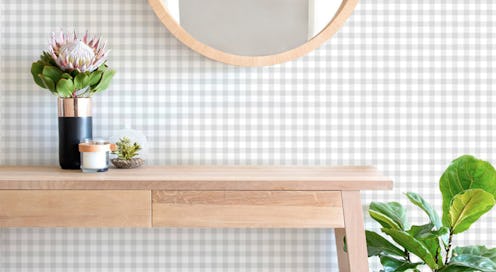 In the living room, popping some gingham throw pillows onto seating is a totally simple way to try the trend — and it's an instant way to bring in a fresh feel without making any major changes. Luckily, it's easy to find a ton of versions at any number of retailers so no matter what size, shape, or color you're seeking, it's likely readily available. You can also play with the patterned wallpaper trend (non-committal types will especially love the removable peel-and-stick variety) and accent a wall with a either a bold or subtle gingham print.