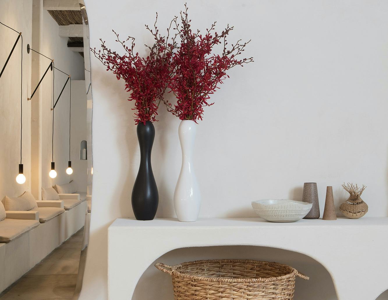 “I had so much fun creating the studio space and bringing a little piece from my home in Africa to LA,” Patrickson tells me about designing her West Hollywood store. As customers sat and took in the space’s warm and minimalist interior while having their custom sandals made (often with a complimentary tea in hand), inquiries about the aesthetically pleasing interior started to rise, the store-owner explains. The teacups they sipped from, the sleek industrial lighting, the large woven lanterns, and irregularly shaped wall mirrors all became topics of conversation, leading Patrickson to her home curation.