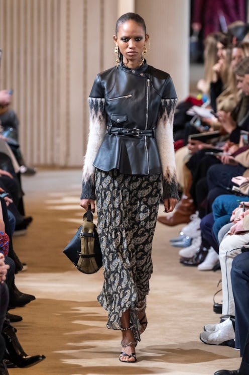 Need a visual? At Magda Butrym, a cream-colored silk blouse on top turns to a knitted bodice at the chest, creating a layered look that almost appears as a corset over a top. It manages to take the romance of a typical going-out piece, but adds on a little extra warmth so you can leave your jacket at home and travel light to your nighttime outing. Calling it now: This blouse-sweater hybrid will sell out everywhere.