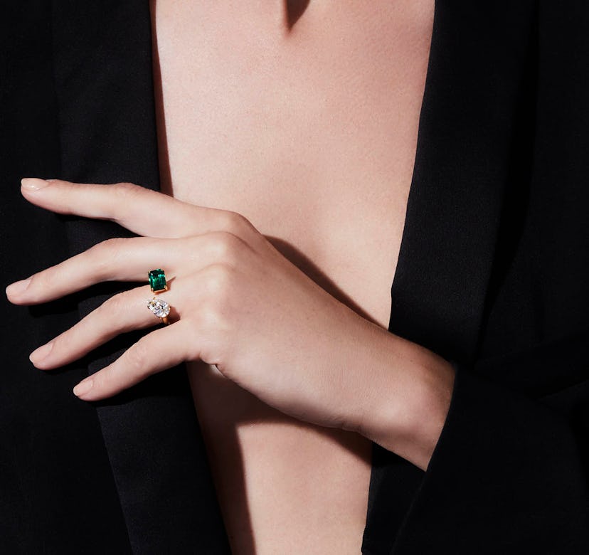 With the popularity of double-stone engagement rings steadily rising, fresh iterations are guaranteed to emerge for 2021 and beyond. “I like to play with a bit of space and proportions,” Guo says of her Toi et Moi designs. “Maybe it’s an allegory of my own romantic relationship.” For Zwart, it’s about color. “I’m hopeless for an emerald and diamond pairing,” she tells TZR.
