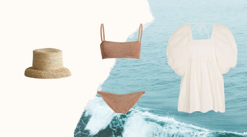 With the boring advice out of the way, we can turn to more exciting things, like channeling classic nautical style in a fresh way. Start with a bucket hat, which is an updated alternative to the wide-brim styles that are guaranteed to fly overboard. As a bonus, it actually fits inside your bag without getting ruined. You'll also want a glamorous bathing suit on hand for an impromptu dip, so opt for a metallic bandeau style like this Hunza G version, which is made from a delightful crinkle fabric. Easy separates, like these high-waisted gingham-print culottes and this backless Cecilie Bahnsen top, look great when worn alone or paired with a piece of your bathing suit, giving you options throughout the day.