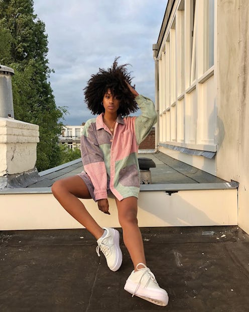 If you're looking for a simple ensemble that is laid-back yet polished, try styling denim shorts with a button-down and sneakers. A workwear shirt is polished but cool colorblocking adds a touch of fun. And as for sneakers, well they're never a bad idea when you want to be comfortable.