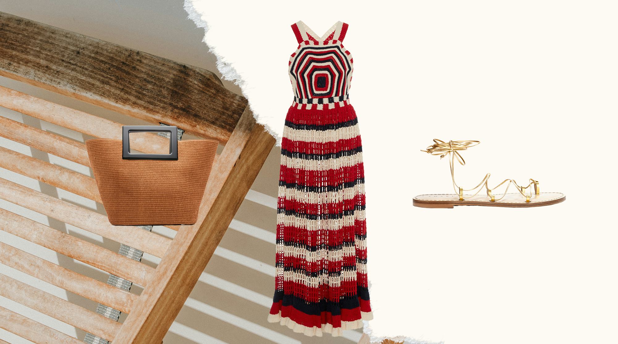 Statement earrings, bracelets, and rings will get annoying, so opt instead for a delicate-yet-unique necklace. (Extra bonus: Any resulting tan lines will be minimal.) Tie your incredibly practical ensemble together with a playful dress in summer's favorite fabric — crochet. This tricolor version will also come in handy for July Fourth, without being too on the nose.