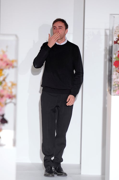 As an integral part of his 25-year career in the fashion industry, his own line, Raf Simons, shouldn't be ignored. "Fuelled by his love for both rebellious youth cultures and traditional menswear, he emerges in fashion halfway through the nineties, presenting a radically different image of masculinity," the label's website states. His line has influenced menswear today, particularly with its black skinny suit. And Simons has even more exciting news: His line is expanding to womenswear. Vogue reports the womenswear line is set to be revealed on Oct. 23, presented alongside his Spring/Summer 2021 menswear line.