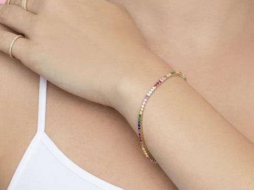 Minimalist jewelry, with its simplistic details and dainty features, will always have a place in the jewelry box, right up there with classic pearls and eye-catching diamonds. That said, as timeless and versatile as the aesthetic can be, it can occasionally lead you to a sartorial rut — not to worry, there’s a perfect solution for that. For those who want to go in a completely different direction from your everyday baubles, the rainbow jewelry trend of 2019 has graced the accessories market with a full roster of colorful gems to brighten up your jewelry style.