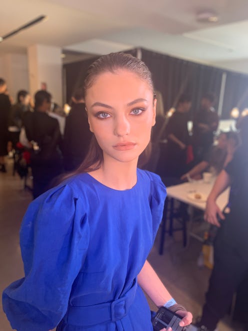 If that sounds like a lot of makeup, you're right — but that's exactly the point. "I want the girls to feel sexy and confident," Vanngo said. "There's still freshness, but this look is all about glamour. I want them to feel confident enough to walk a red carpet." But just to be sure, I did a test: When Vanngo finished a model's makeup, I asked her if she felt like she could walk a red carpet, then and there. She looked at herself in the mirror, smiled, and said, "Hell yes." And if that isn't confidence, I don't know what is.