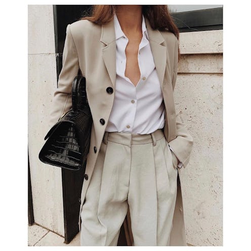 Designers are reimagining old-school silhouettes anew. Look for styles that feature vintage-inspired clasps and details, but in modern shapes or a fresh hue. Roomy totes like Mansur Gavriel's cult-favorite bucket bag or By Far's crossbody bags feel that much more luxurious in embossed leather or leather-effect material. Now all you're missing is an oversized peacoat and circular sunnies.